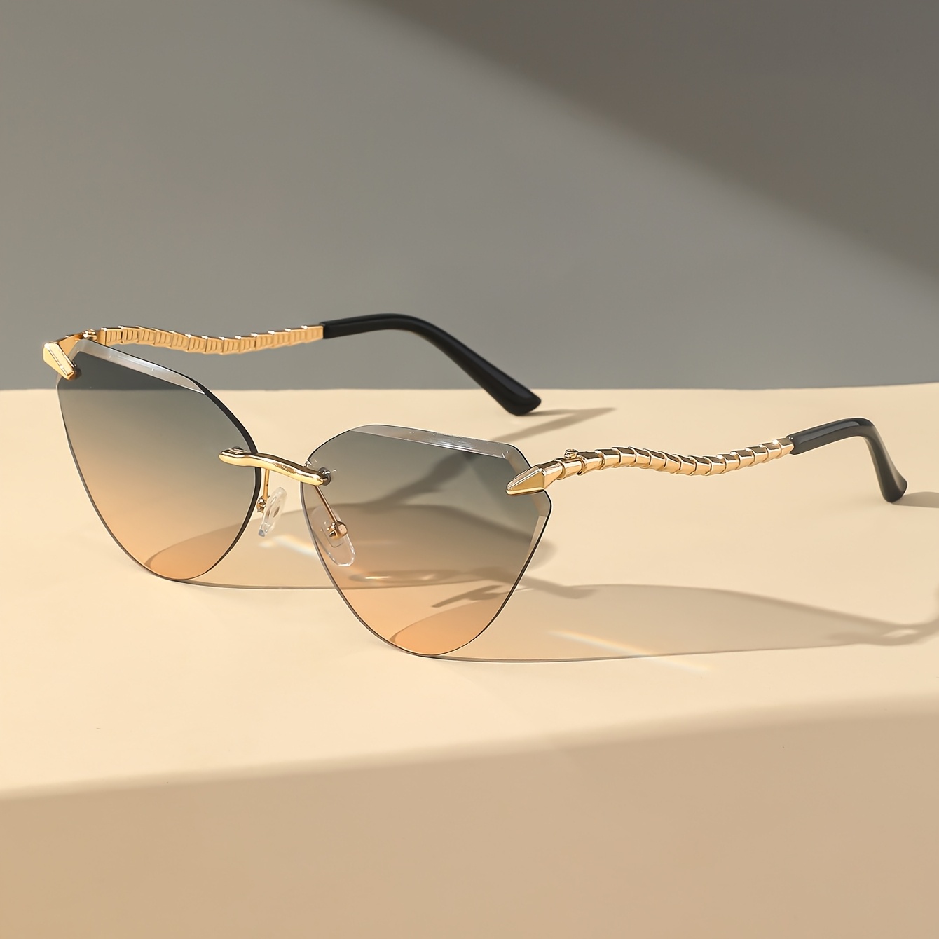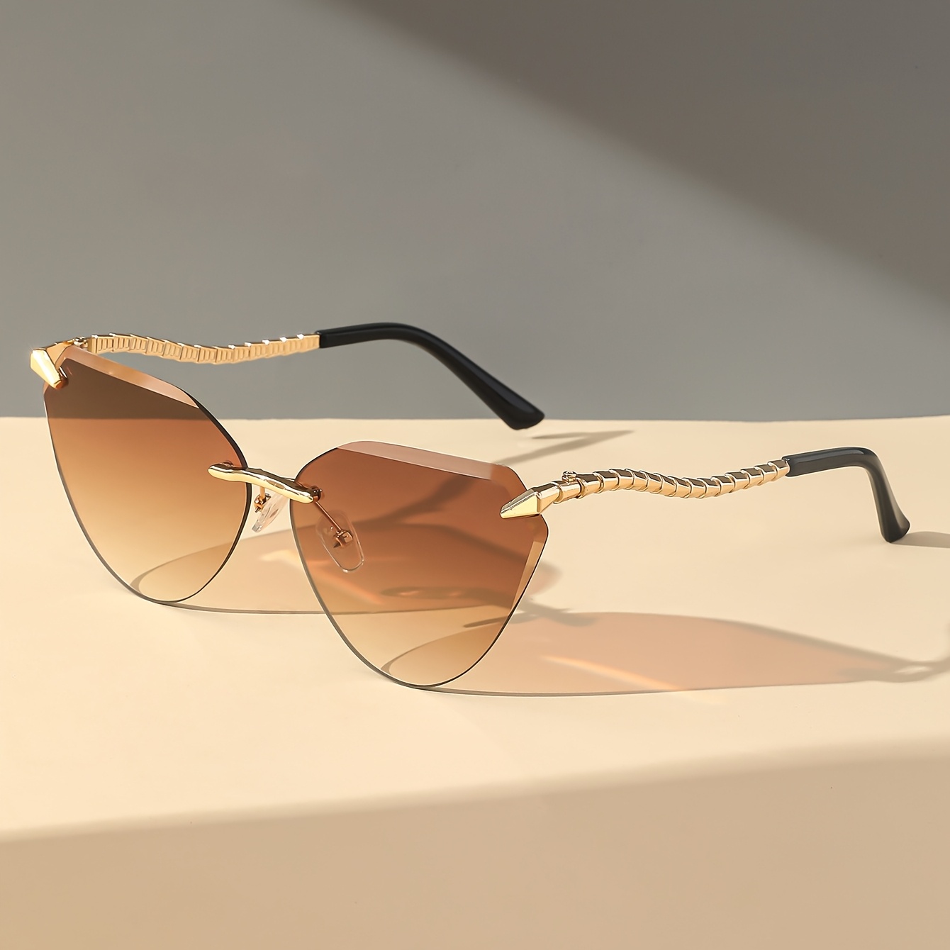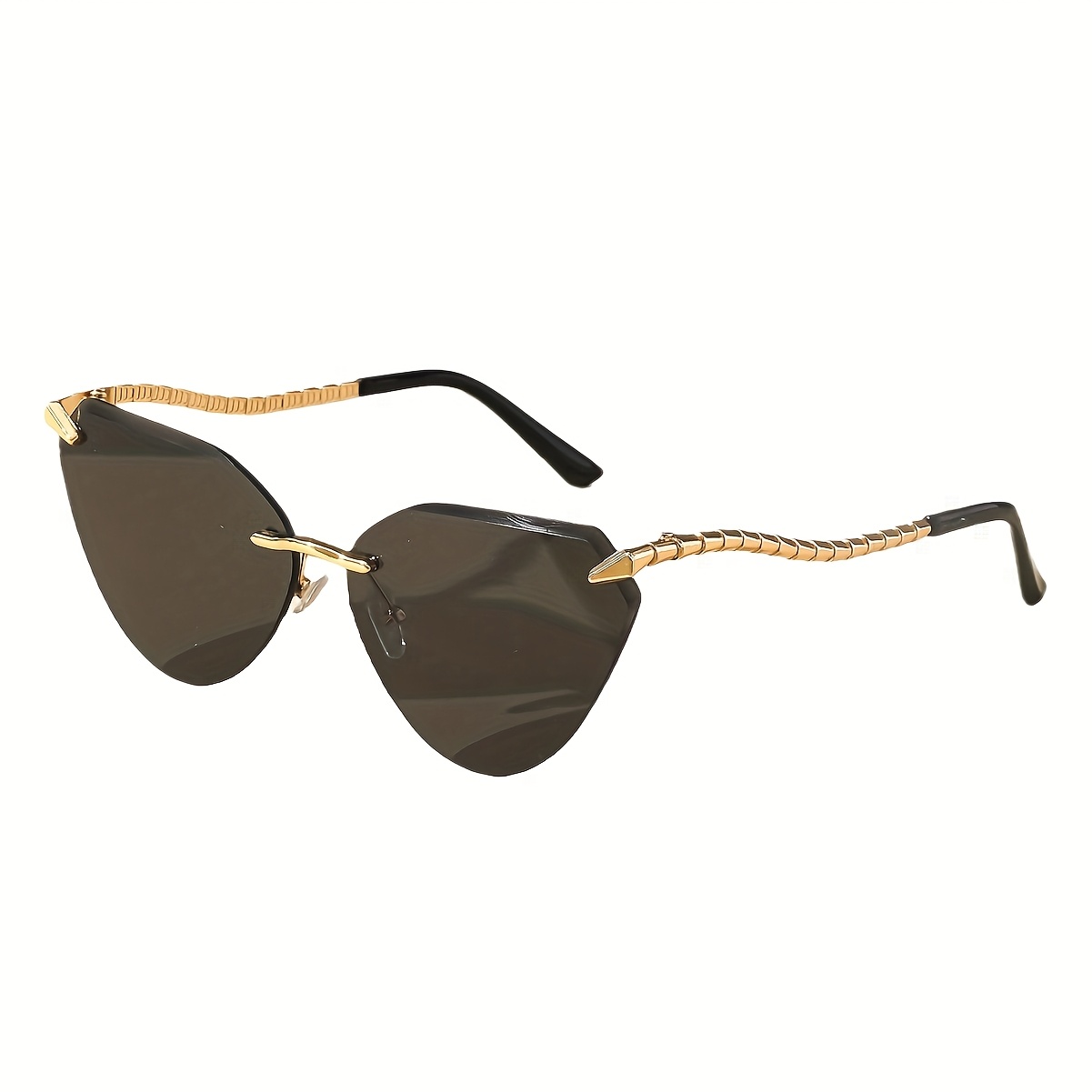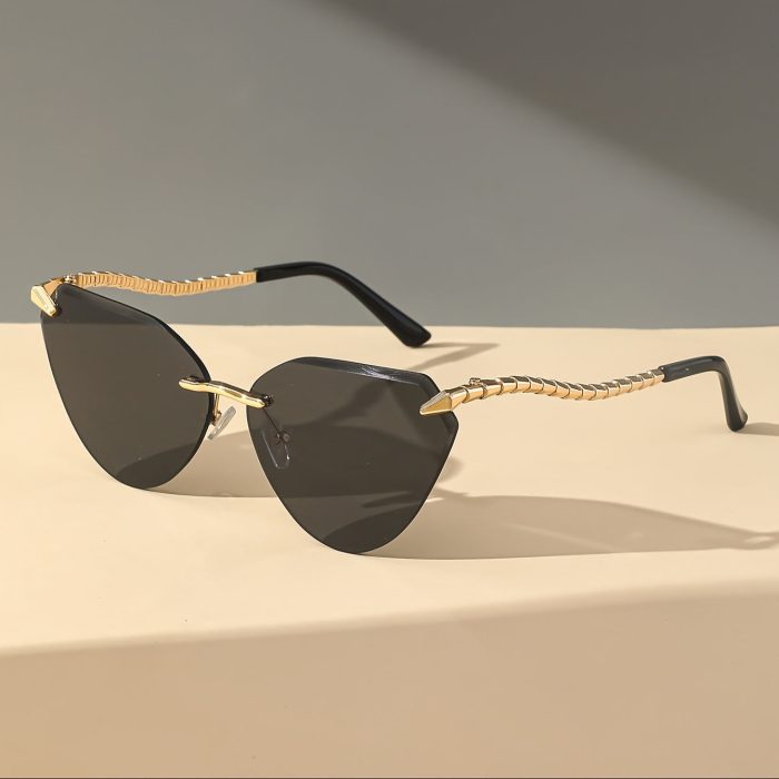 Snake Leg Frameless Cut Cat Eye Glasses, European And American Glasses, Fashionable Hot Girl Glasses For Women, Without Battery