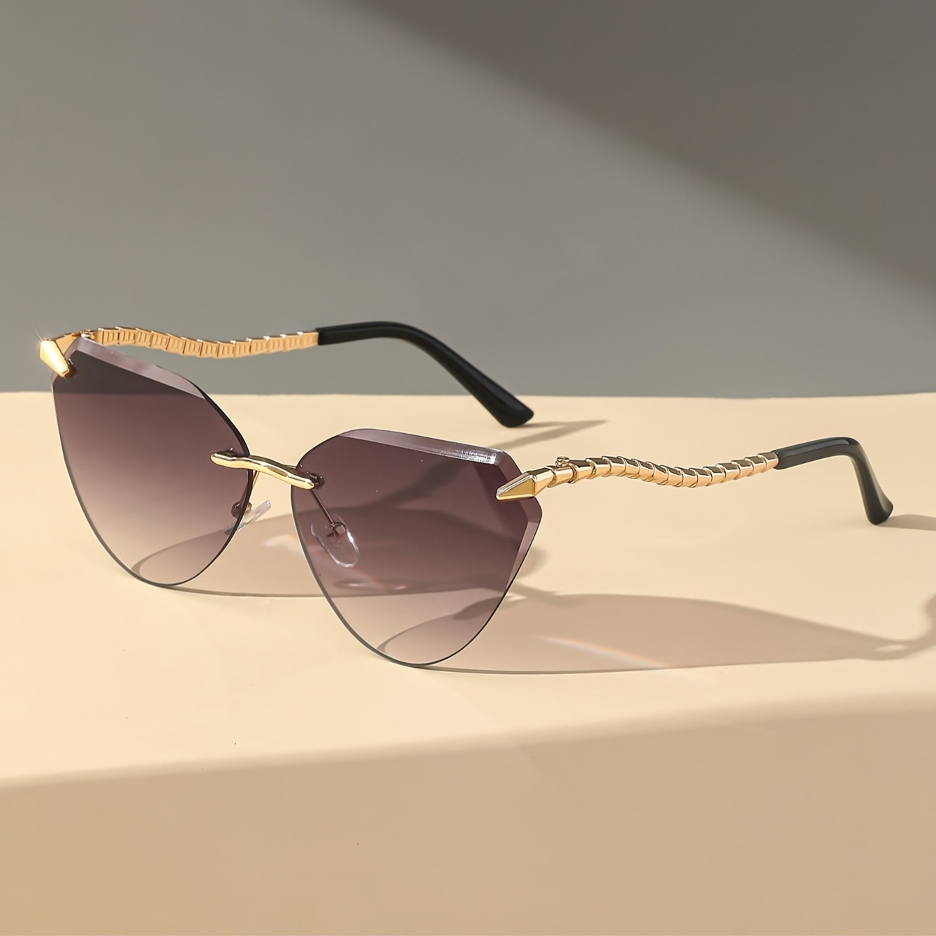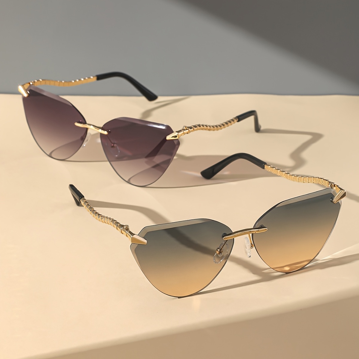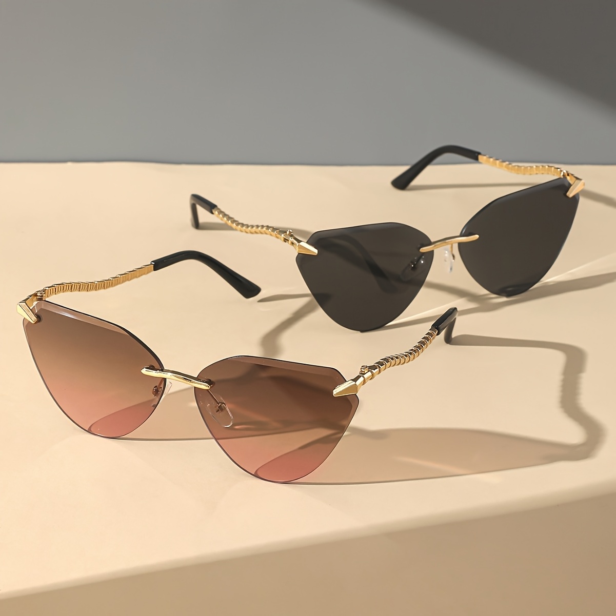 Snake Leg Frameless Cut Cat Eye Glasses, European And American Glasses, Fashionable Hot Girl Glasses For Women, Without Battery